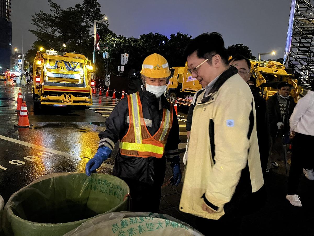 跨年夜當晚,環保局出動清潔隊員、環保義工共同執行維護作業。迅速完成道路清掃、垃圾清運與回收分類處理,讓市府周邊恢復原本整潔面貌。環保局強調,這份成果來自每一位市民的自律與配合,也再次證明臺北是一座重視公共環境品質的城市。