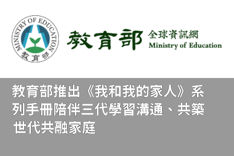 為回應我國邁入超高齡與家庭型態多元發展的社會趨勢,教育部已發行《我和我的家人—青年世代》、《我和我的家人—中年世代》及《我和我的家人—高齡世代》系列家庭教育手冊,分別針對青年世代、中年世代及高齡世代量身設計,引導不同年齡層在家庭中學習理解、溝通與支持彼此,強化代間互動與家庭凝聚力。手冊以生活化情境切入,協助民眾在忙碌生活中,找到與家人相處的實用方法與情感連結的可能性。
