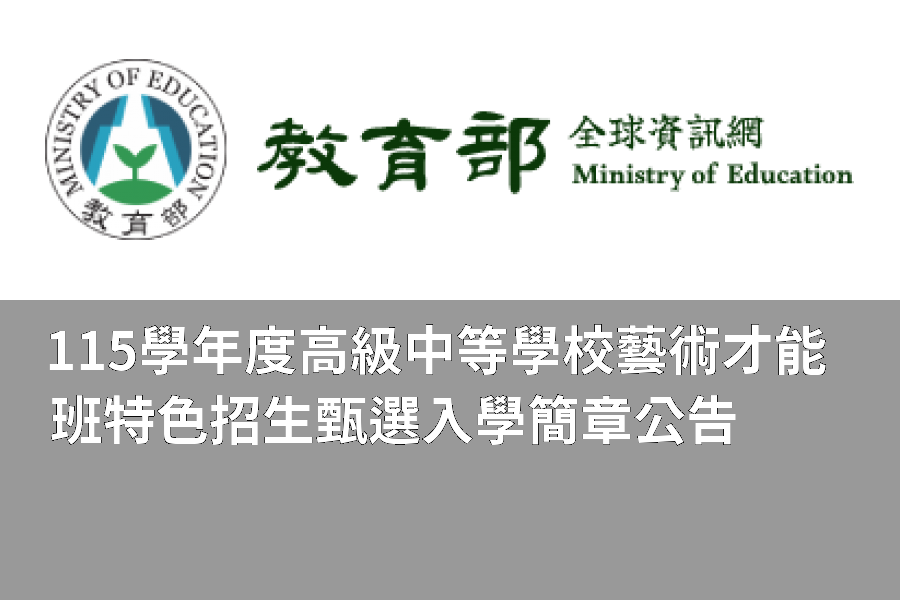 115學年度高級中等學校藝術才能班特色招生甄選入學各類各區簡章於今(2)日公告。為使學習評量能夠呼應學生的學習目標與歷程,教育部前於111年7月25日公告自114學年度起已正式實施高級中等學校藝術才能班特色招生甄選入學術科測驗題型調整,題型著重應試者的知識統整、創作論述及即興表達能力,期透過多元能力的檢測面向,建構符合當代藝術教育選材育才工具 (測驗科目內容及方式請詳閱簡章)。