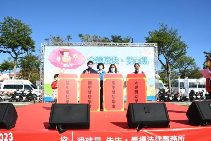 2023台東家扶愛市集「幣需有你,幸福傳愛」貧困家庭學童助學活動,今(14)日於美術館旁蛋糕公園舉行,為感謝家扶中心長年的用心付出,台東縣府社會處長陳淑蘭致贈機構春節加菜金及安置兒少慰問紅包。縣長饒慶鈴感謝社福機構與縣府密切合作,是縣府最佳協力夥伴,無論是對兒童及少年的照顧或對婦女的陪伴,每間社福機構都相當用心;在農曆春節前,縣府送上最真誠的暖意與祝福,期盼每位院童、兒少、婦女及各社福夥伴們,開開心心過好年。