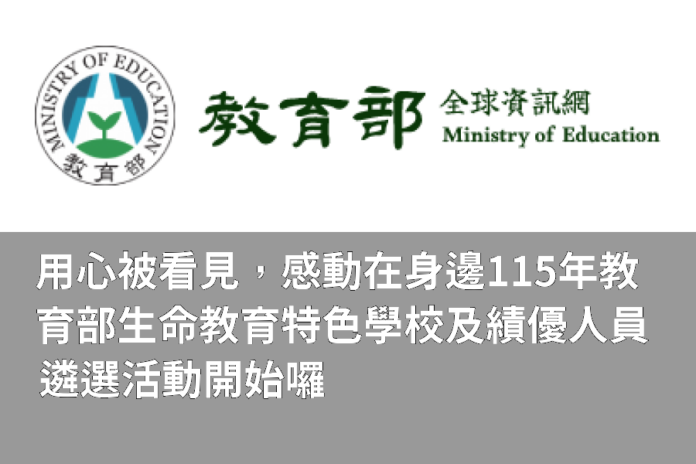 用心被看見,感動在身邊 115年教育部生命教育特色學校及績優人員遴選活動開始囉