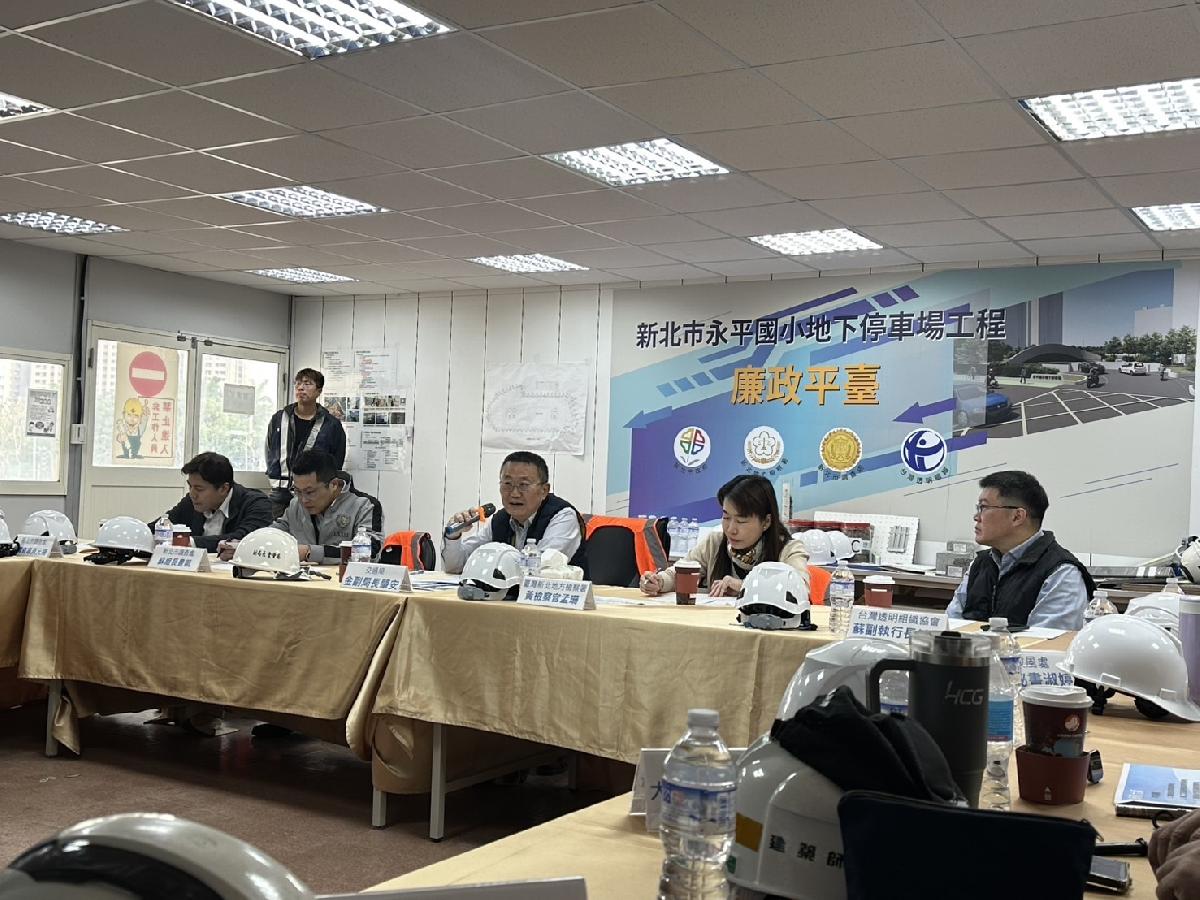 交通局副局長金肇安今(5)日主持「永平國小地下停車場廉政平臺」第5次聯繫會議,邀集新北地方檢察署檢察官黃孟珊、台灣透明組織協會副執行長蘇毓昌、新北市調查處組長蘇豊凱、新北市政府政風處主任秘書劉育君、永平國小校長唐永安,及環保局、教育局、警察局等機關代表共同與會,檢視地下掩埋垃圾清運成果與後續工程推動情形。
