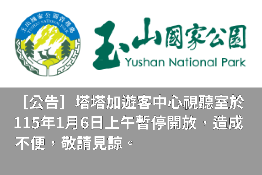 觀光旅遊[公告]塔塔加遊客中心視聽室於115年1月6日上午暫停開放,造成不便,敬請見諒。 觀光旅遊 [公告]塔塔加遊客中心視聽室於115年1月6日上午暫停開放,造成不便,敬請見諒。 編輯 李 沛君 2026-01-05 本處塔塔加遊客中心視聽室為辦理公務活動所需,將於115年1月6日上午暫停開放。 期間將暫停多媒體簡報服務,造成您的不便,敬請見諒。 Tags玉山國家公園 延伸閱讀 商情 不只是健身而已!這間板橋格鬥館讓你學會如何保護自己! 商情 桃園崧宇廣告專業LED招牌工程打造北部地區吸睛店面 商情 崧宇廣告–桃園廣告招牌設計製作、北部LED招牌推薦 商情 屏東iPhone維修官方授權IRP鼎級手機維修中心