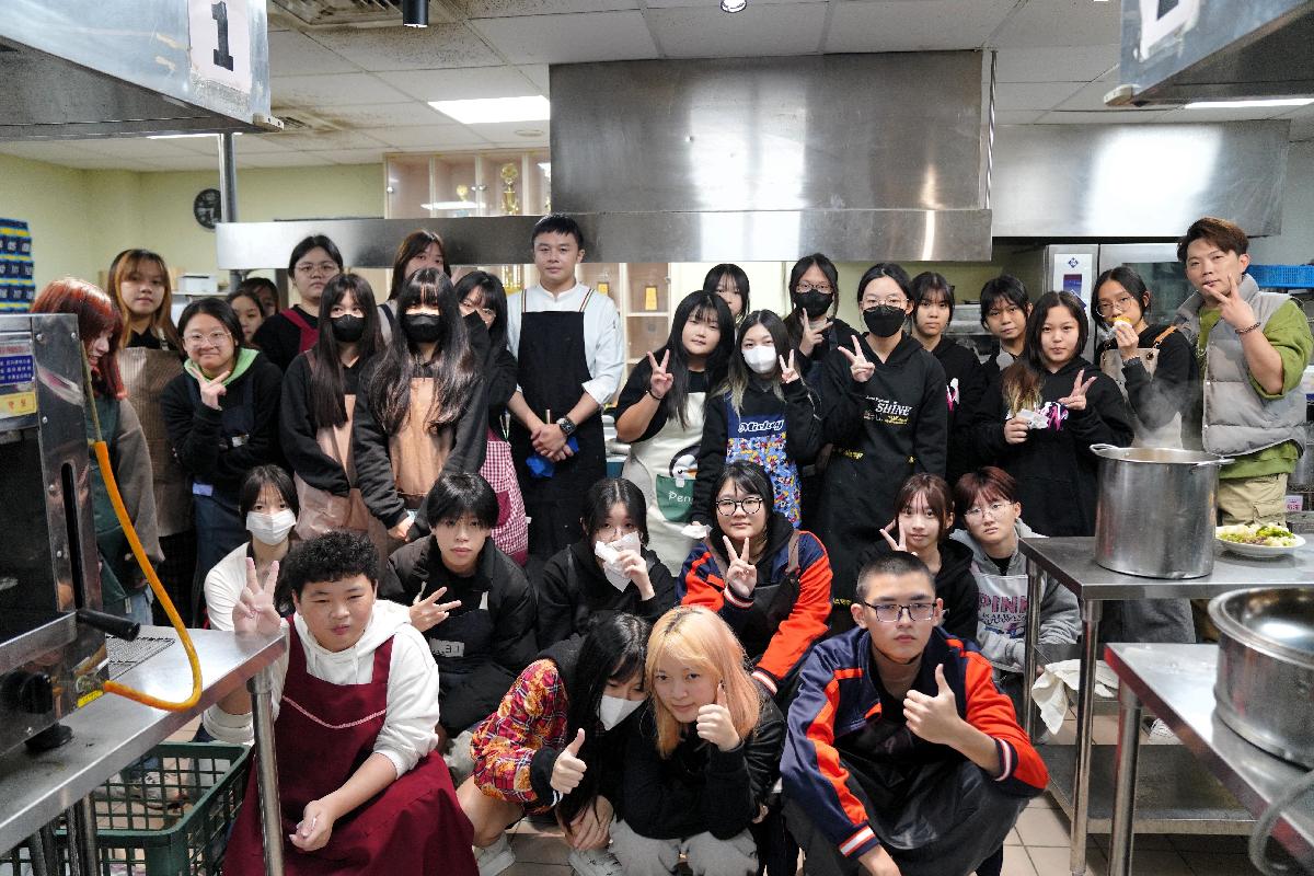 第三道料理則結合鯛魚、蝦子,搭配紅蘿蔔、高麗菜與蛋製作成料理,讓學生學習如何在不過度調味的情況下,完成適合寵物食用的主食。課程結束後,食材也完全沒有浪費,游星淵主廚將剩餘食材變身為人類大餐炸雞與蔬菜蝦頭湯,讓同學們邊學邊吃,在滿滿成就感與笑容中結束這堂特別的課程。