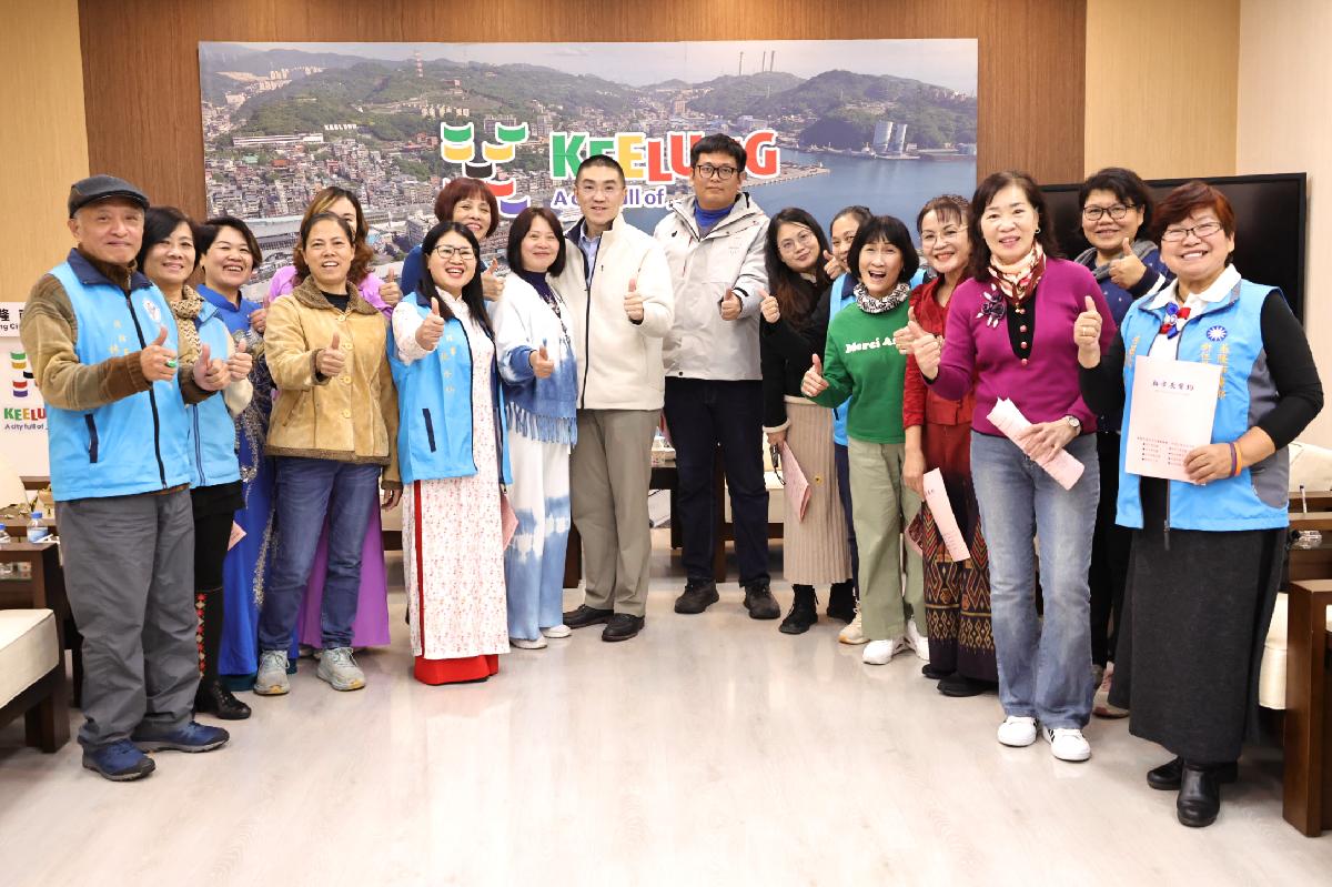 基隆市多元文化發展協會理事長趙玉珍昨(5)日下午,率領瑪尼舞團、泰享舞蹈團、菲律賓舞蹈團、國旗志工隊、暖新中華廚藝「山水草間」、越南、菲律賓、印尼廚藝組等多個新住民團體代表拜會市長謝國樑,進行一場溫馨感人的「與市長有約」交流座談。副市長邱佩琳與民政處長呂謦煒亦一併出席,展現市府對新住民事務的高度重視。