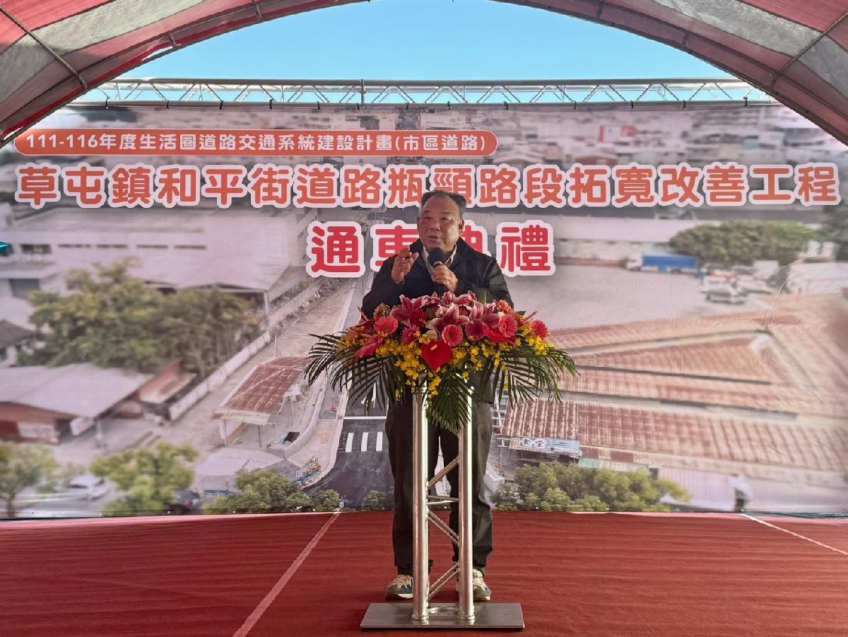 內政部國土管理署中區都市基礎工程分署分署長陳俊雄今(10)日出席南投縣「草屯鎮和平街道路瓶頸路段拓寬改善工程」通車典禮,內政部國土管理署表示,和平街周邊的成功路(台3線)、中山街與中正路(台3甲)街廓是草屯民眾重要的生活市集,聚集市場、眾多商家與來往人潮。今日通車的和平街路段由中央補助逾1.35億元,不僅打通台3線及台3甲兩條重要道路的連結,更改善和平街過往路幅不足的人車擁擠現象;新設的人行道、加寬的車道,以及完善的照明與排水設施,將為民眾提供更安全、舒適與便捷的交通環境。