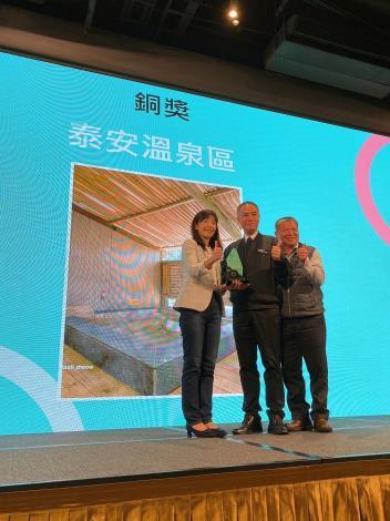 交通部觀光局舉辦「2022-2023台灣好湯-金泉獎」票選活動,本縣「泰安溫泉」共獲得7萬156票數支持,為台灣19大溫泉區域1名,感謝鄉親及全國遊客對泰安溫泉的支持,本縣泰安溫泉區經過專家評選後,榮獲「十泉十美獎」銅獎及「最佳CP值獎」金獎榮耀,未來將持續辦理行銷活動給予全國遊客更多優惠,歡迎全國遊客蒞臨苗栗泰安泡溫泉、賞美景、品美食,感受慢城及泰安美人湯的獨特魅力。