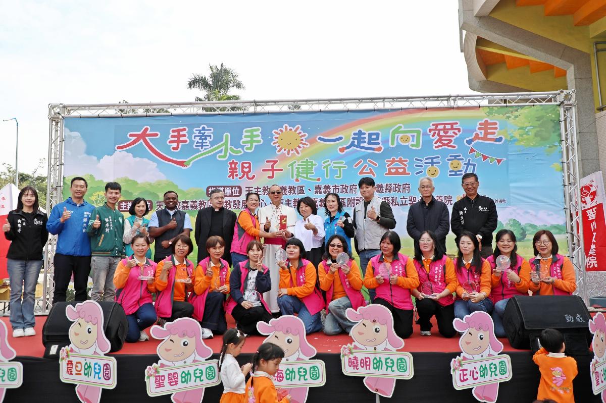 為協助聖心教養院汰換老舊冷暖氣設備,天主教嘉義教區幼教發展中心結合各合作園所,以「天主的愛」為核心,推動生命教育課程與「愛心撲滿募集活動」。幼兒們將父母給予的零用錢存入撲滿,以實際行動學習分享與付出。今(10)日於嘉義公園舉辦「大手牽小手、一起向愛走」親子公益健行活動,在黃敏惠市長、天主教嘉義教區大家長浦英雄主教、教廷駐台代表馬德範蒙席(StefanoMazzotti)代辦及貴賓的見證下,由園長與幼兒代表捐贈予聖心教養院。本次活動共發出1,500多個愛心撲滿,募集善款新臺幣40萬元,黃敏惠市長也代表全體市民捐贈5萬元予聖心教養院,期望為孩子傳遞愛與溫暖。 黃敏惠市長表示,天主的愛無所不在,也守護著每一個家庭,並回顧自身從天主教學校體系成長,深刻感受到教育中無私付出的力量。黃敏惠市長感謝浦英雄主教的號召,在聖心教養院需要資源的時刻,凝聚教育界的愛心力量,從幼兒教育扎根,陪伴最需要被照顧的孩子。此次由幼兒教育中心發起,串聯嘉義市、嘉義縣及雲林縣多所幼兒園,孩子們從自己的小撲滿中捐出積蓄,不僅是物資的支持,更是愛與品格教育的實踐,讓人深受感動。黃敏惠市長提到,儘管當天清晨寒冷,但孩子們純真的光亮與眾人的愛心,如同陽光般溫暖人心,希望透過這樣有意義的活動為更多孩子帶來溫暖。 浦英雄主教感謝市長黃敏惠長期支持嘉義市天主教在醫療、教育、社會與幼教等各項服務。浦英雄主教指出,此次募集善款來自三個縣市的孩子們,一筆一筆捐出自己的「小撲滿」,為最弱小的孩子送上溫暖。聖心教養院因建築老化亟需整修,在孩子們募集善款及黃敏惠市長加碼捐助5萬元,將為院內孩子帶來冬日的溫暖與希望。浦英雄主教也代表天主教會,向所有付出愛心的孩子與各界表達最誠摯的感謝與祝福。 活動現場規劃多元的宣導、體能與益智闖關遊戲,讓幼兒在家人陪伴下逐一挑戰完成,不僅舒緩健行時的疲憊,也促進親子互動與情感交流。同時,聖心教養院特別設定「身心障礙體驗專區」,透過遊戲方式讓孩子親身體驗視障、肢體障礙者在日常生活中所面臨的不便,進而培養同理心,學習關懷與尊重他人。 位於嘉義縣東石鄉港墘村的聖心教養院,是蒲敏道神父實踐天主大愛的起點,也是嘉義縣第一家立案的身心障礙福利服務機構,專責照顧重度及極重度多重身心障礙者。並多次榮獲衛生福利部社會及家庭署評鑑「優等」肯定。然而,院區住宿樓層的冷暖氣設備因年久老舊已不堪使用,面對酷熱與嚴寒的極端氣候,對院內中高齡身心障礙住民構成嚴重健康風險。