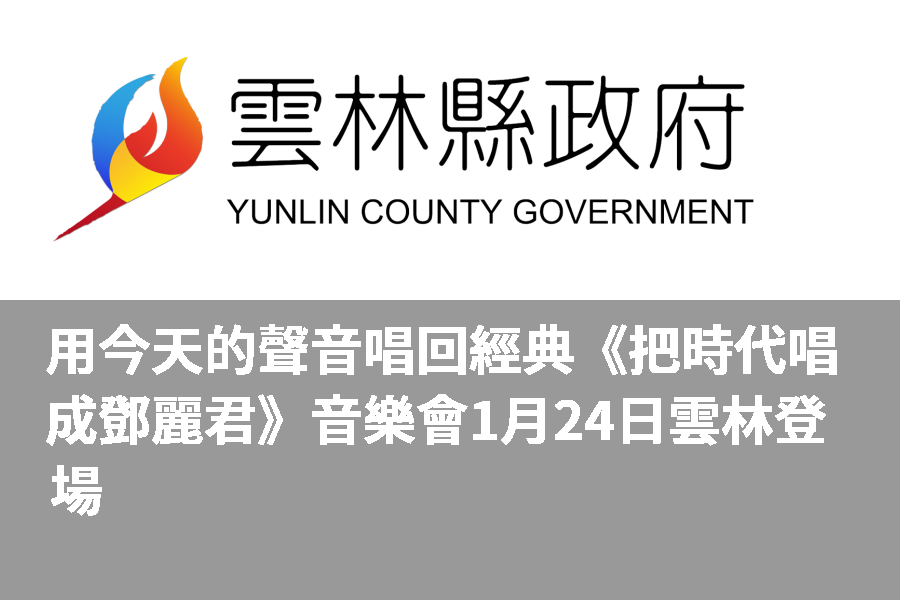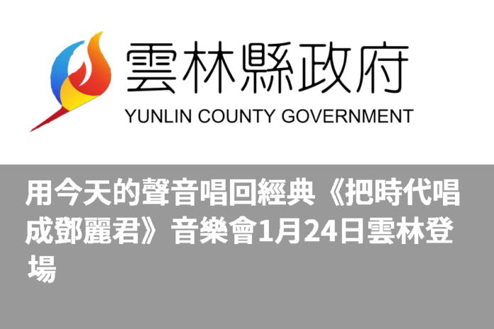 雲林縣政府緬懷出生於雲林的國際巨星鄧麗君,將於1月24日(六)晚間7點,在雲林表演廳盛大舉辦《把時代唱成鄧麗君-鄧麗君音樂會》,透過跨世代歌手重新詮釋經典旋律,向這位永恆歌后致敬。