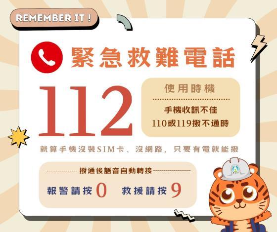 但提醒民眾,若您所在的地區一格訊號都沒有,也就是那個位置沒有任何一間電信業者訊號涵蓋,也是無法撥出的,因為他的原理就是假設您是使用台灣大哥大電信,你剛好在一個收不到台灣大哥大訊號的地方,但那個地方收的到遠傳電信的,那撥打112電話時會自動使用遠傳電信訊號。
