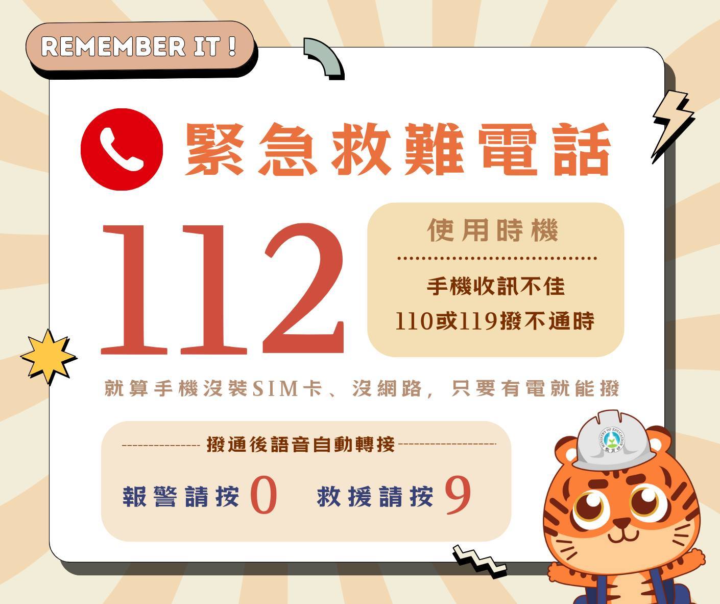 平時在訊號充足的地方請以撥打119為優先,因為112撥通時會先進入自動語音協助,會耗費較多時間,所以建議平時報案都是以119為優先選擇。