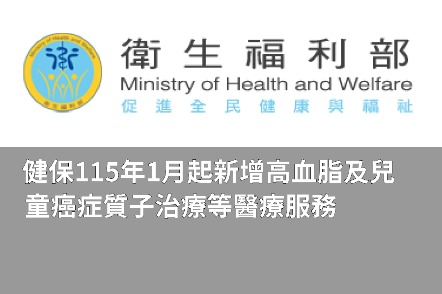 衛生福利健保115年1月起新增高血脂及兒童癌症質子治療等醫療服務