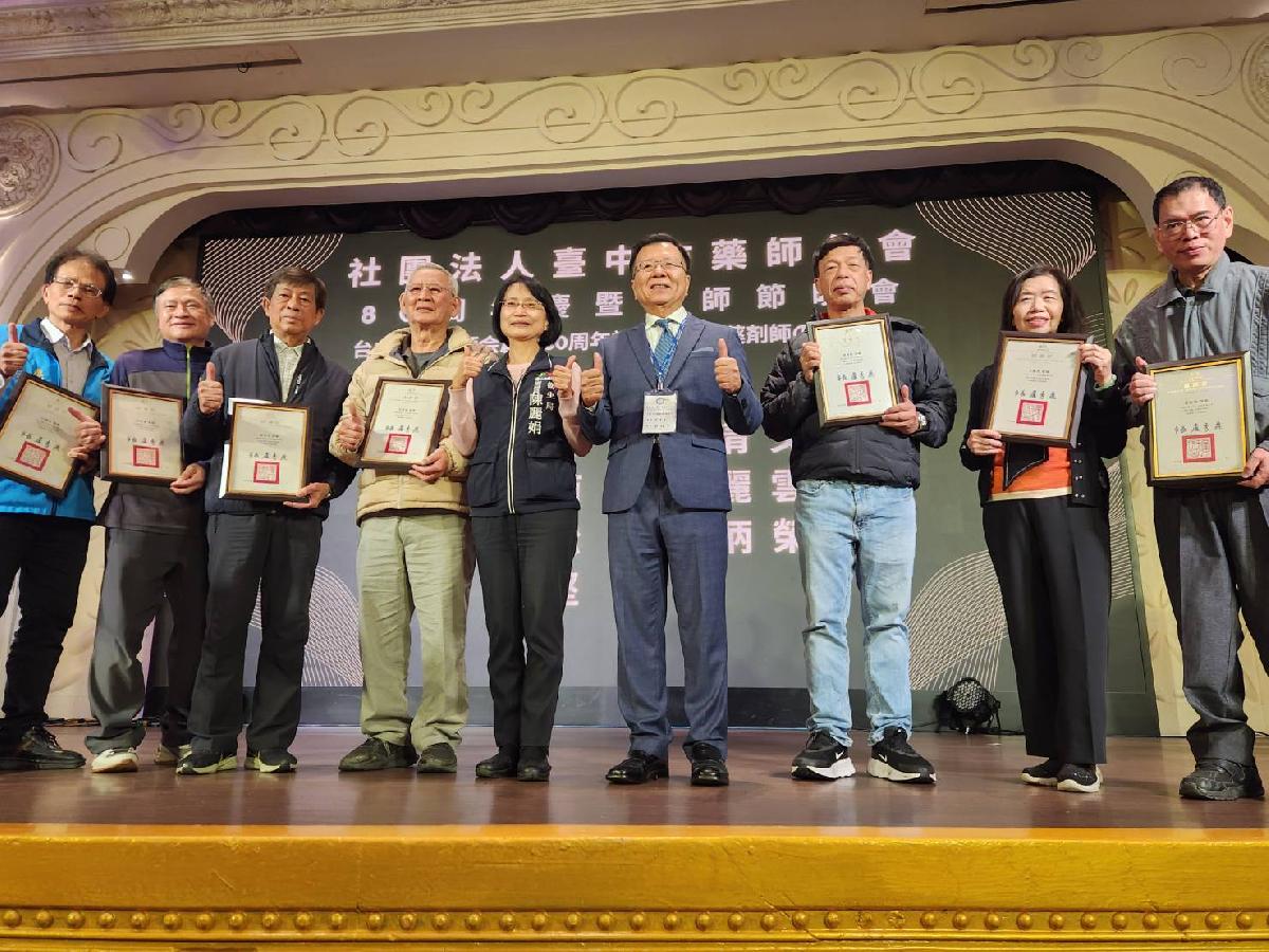 為肯定藥事人員長期站在第一線,守護市民用藥安全與健康,台中市政府衛生局局長曾梓展於昨(11)日代表市長盧秀燕出席由社團法人台中市藥師公會及大台中藥師公會共同舉辦的藥師節慶祝大會,並頒發114年度台中市「藥事服務獎」,表揚16位在公共衛生與藥事照護領域表現卓越的藥師與藥劑生,感謝他們成為市府推動食安把關與健康照護的重要後盾。