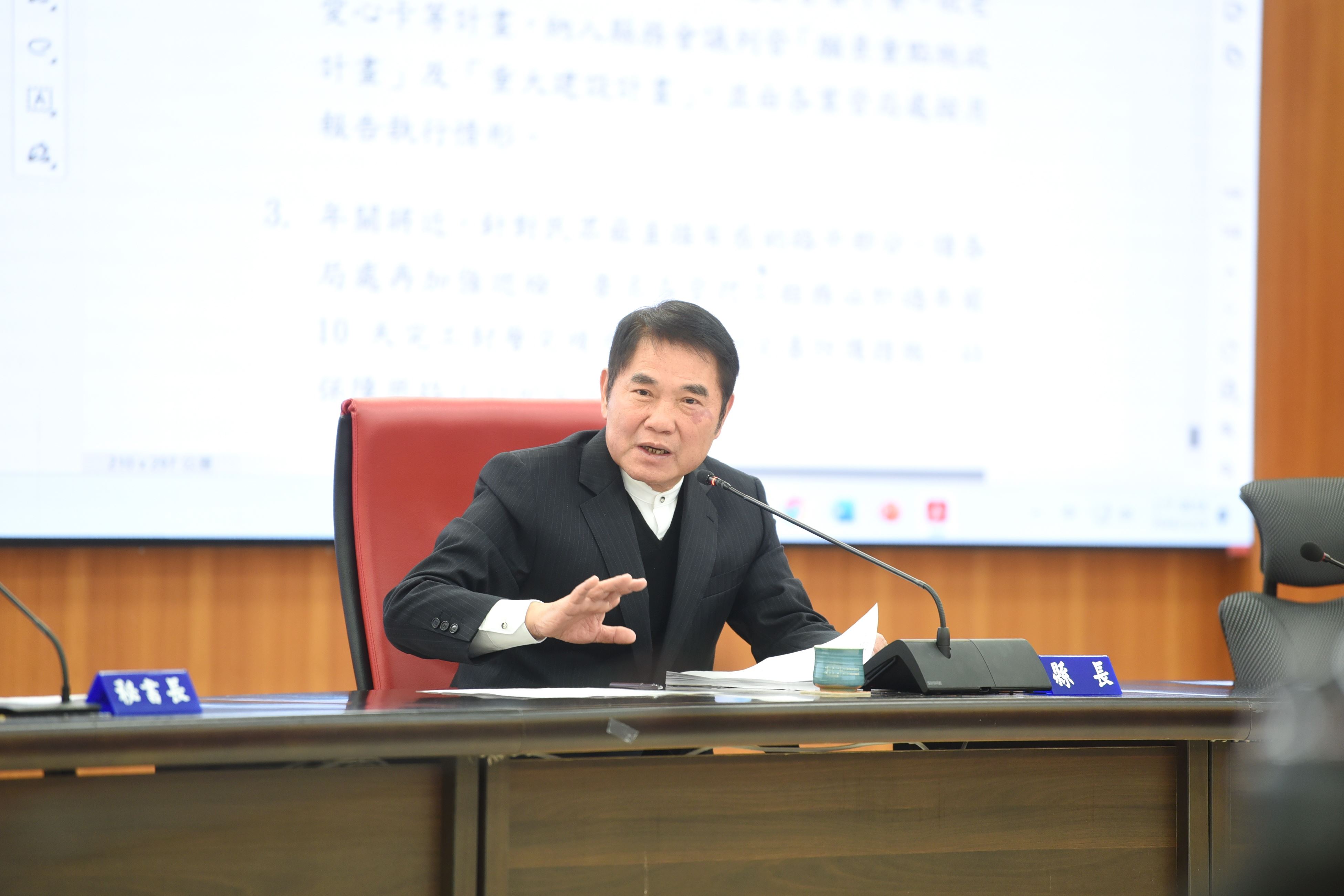 此次縣務會議,密集討論後通過由人事處提交的10項提案,其中,有關修正縣府組織自治條例部分條文暨編制表,增置副縣長與副秘書長各1人、增加視察及高級社會工作師等內容,於縣議會通過後報請內政部和考試院備查,並自3月16日生效。