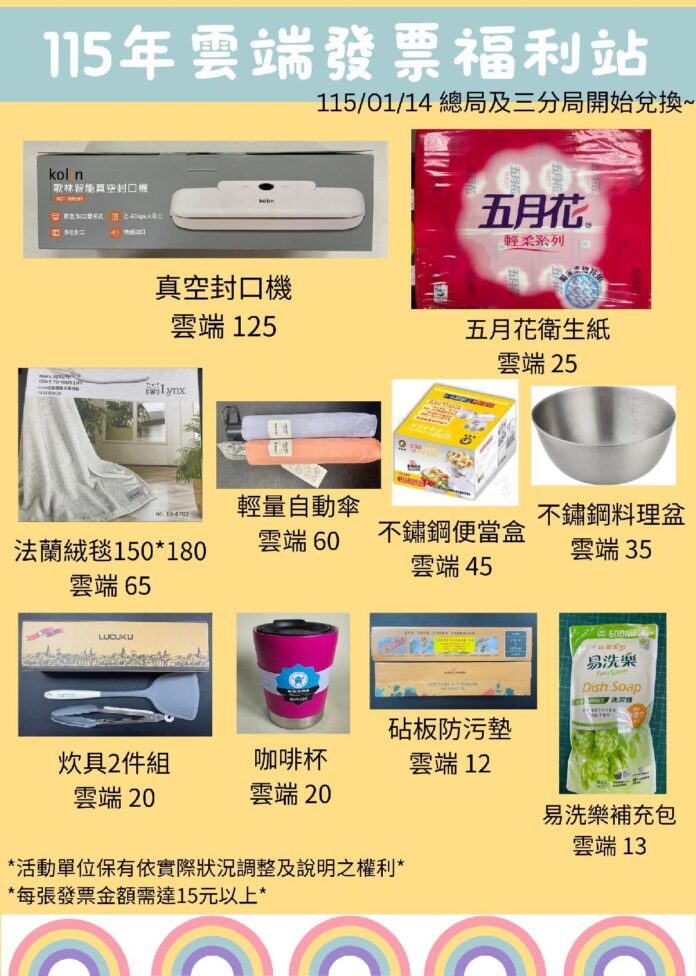 屏東縣政府財稅局邀請大家消費時,多使用載具儲存雲端發票,為提倡民眾捐贈雲端發票做公益,自115年1月14日起在總局及三分局新上架「小稅猴雲端發票福利站」兌換宣導品活動,同時協助統一發票兌獎APP下載、載具歸戶、設定領獎帳戶服務。