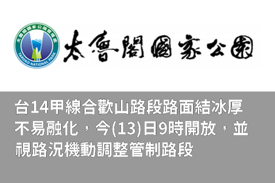 因應高海拔路段路面積冰未溶, 將於今(13)日09:00起調整管制作為如下:
