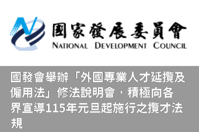 國家發展委員會(以下簡稱國發會)偕同勞動部與內政部移民署於今日(1月13日)舉辦「外國專業人才延攬及僱用法」(以下簡稱外國人才專法)修法宣導說明會,邀請駐臺機構、外國商會、工商團體、學研單位及僑外生社群代表共計約190餘位嘉賓與會,針對工作許可、永久居留、勞退及就業保險等各界關切之議題,進行交流。