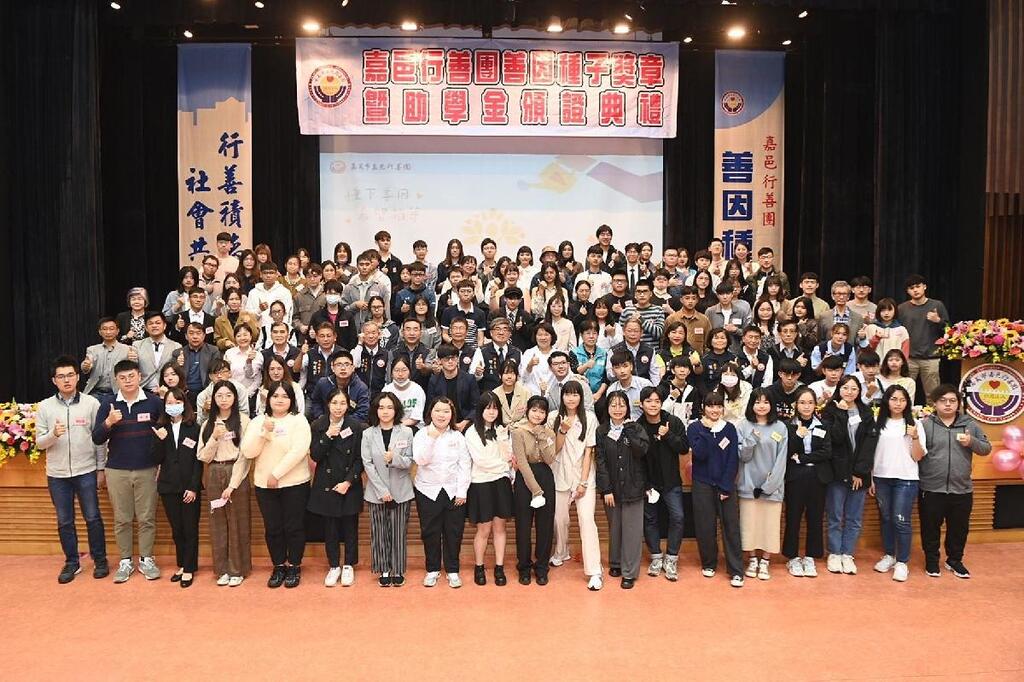 嘉義市嘉邑行善團為扶助弱勢家庭學子,推動「善因種子助學計畫」於今(15)日舉辦頒贈儀式,期待在社會善心人士的幫助下,學子們可以成為傳遞善因的種子,未來回饋社會帶動良善的循環。嘉義市長黃敏惠也出席一同勉勵獲獎學子們,本次共有來自全國各大學院校114名優秀學子獲獎,總計核發金額為266萬元。 黃敏惠市長表示,感謝嘉邑行善團長久以社會服務與慈善活動為核心宗旨,結合群眾力量幫助弱勢,近年推動「善因種子助學計畫」,提供遭逢變故家庭的大學生每人2至5萬助學金,今年擴大受獎名額到114名,帶給更多亟需幫助的學子實質幫助,也是在世間散播善因種子,希望他們有朝一日也能幫助別人,讓正向善念能夠循環不息。 黃敏惠市長也感佩獲獎學子們不畏懼艱難、努力向上的精神,即使環境並不如人意,道路崎嶇難行,但仍勇於面對挑戰與挫折,鍛鍊一顆勇敢向前、永不放棄的心,譜出屬於自己的生命樂章,迎向美好的未來。黃敏惠市長更鼓勵各位學子們「生命影響生命」,期待同學們未來在各行各業發光發熱,並且積極回饋社會,讓善因種子成長茁壯,善因循環永續不斷。 活動上也安排受獎同學分享得獎心得,其中阮同學來自越南依親來台念書,儘管離鄉念書遭遇了許多不為人知的辛苦,她仍抱持積極樂觀的心境面對這些挑戰;另一位陳同學則分享自己從小家境艱難,經常靠教會及慈善團體救助才能生活,也因此十分感謝一路上曾經幫助過自己的人,現在他積極走進偏鄉幫助、服務弱勢孩子們,希望用自己的力量回饋社會,發揮自己的價值;還有一位林同學就讀醫學系,高中時因母親重病家計陷入困難,艱辛的求學路上接受了許多援助得以繼續升學,期待自己未來成為醫生後能夠奉獻社會,繼續將愛傳下去,幾位同學的心得分享激勵人心,獲得滿堂彩,氣氛感動溫馨。 嘉義市嘉邑行善團理事長徐文志表示,嘉邑行善團58年來勵行造橋鋪路、施棺及貧困扶助的志業工作,深切體認經濟弱勢家庭的優秀學生在教育資源上的匱乏。所以自110年開始推動善因種子助學計畫,提供遭逢變故家庭的大學學子,每人2至5萬元的助學金,實施迄今,已有302位學生獲獎,累計金額達719萬元。今年更適逢新冠肺炎疫情衝擊,有感於社會需幫助的家庭增加,在理監事會的同意下,將受獎名額倍增,讓更多亟需幫助的學子,在其求學之路帶來希望並獲得實質的助益!這也是為世間土壤埋入一顆顆善心的種子,希望受獎學子有朝一日,也能成為別人的貴人,讓心中的善念,薪火相傳。 嘉義市嘉邑行善團表示,過去曾獲得「善因種子助學計畫」幫助的學子不僅在校表現優異,對未來也都有所期許,就讀中山大學的育玟(化名)對金融領域有興趣,部份獎學金拿回去做爸爸的醫藥費,其餘則用來準備金融專業證照,希望未來能順利取得特許金融分析師資格,改善家裡環境。於南部就讀大學的偉宥(化名)從小在育幼院長大,課業中積極學習之外,平日則主動做志工服務,他希望未來生活穩定,也能像行善團堅持的善念一樣,奉獻己力,幫助社會上相同遭遇的小朋友,將「善的循環」延續下去。