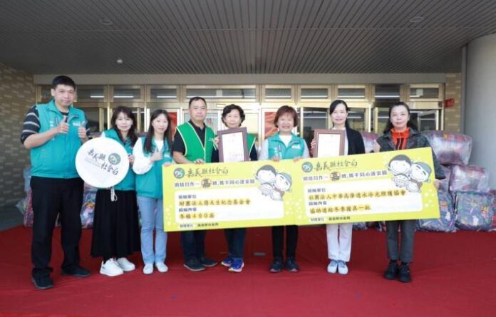 財團法人簡天生紀念基金會及社團法人中華高滲透水冷光照護協會攜手捐贈嘉義縣社會局及社福團體冬被寢具400件,提供身心障礙團體、社福機構及弱勢家庭。社會局長張翠瑤代表縣長翁章梁接受並頒發感謝狀,感謝基金會及協會長期投入公益、關懷弱勢。