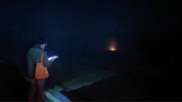 後龍雜草火警煙霧瀰漫環保局夜間稽查,消防局出勤滅火