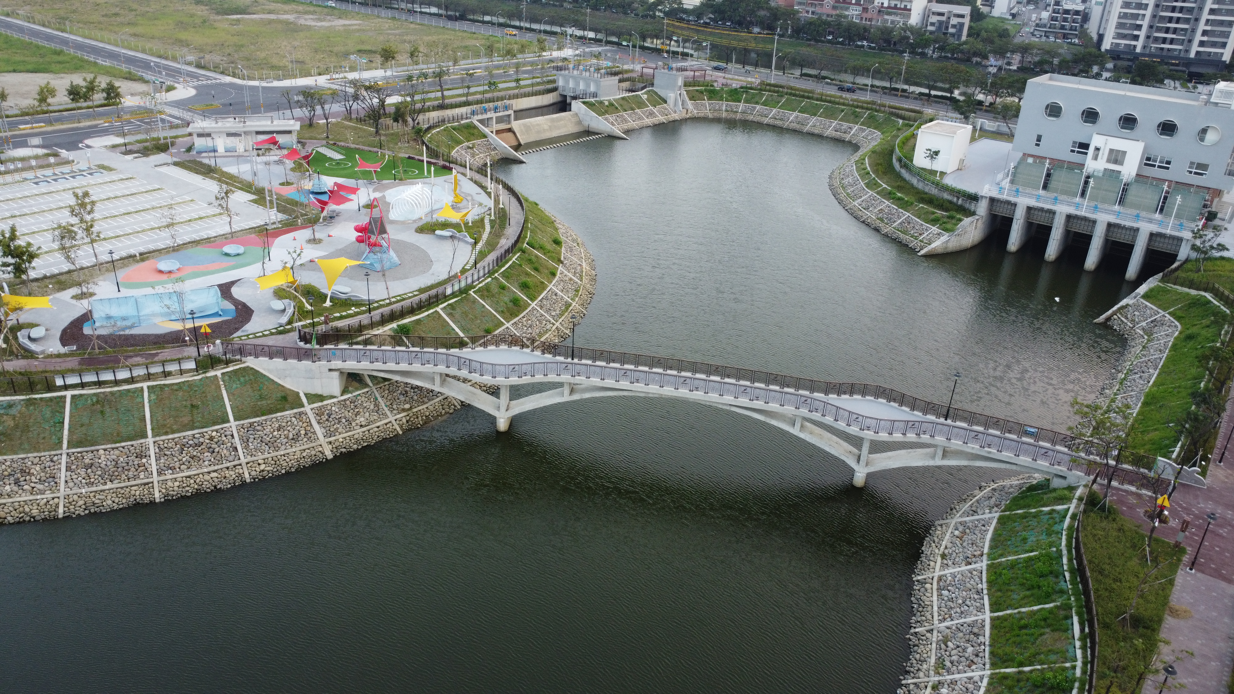 設施規劃則依基地條件彈性設計,包含地面型與地下型滯洪池、多功能景觀滯洪池,以及透水鋪面、生態池等低衝擊設施,讓防洪設施同時兼顧景觀與使用需求。