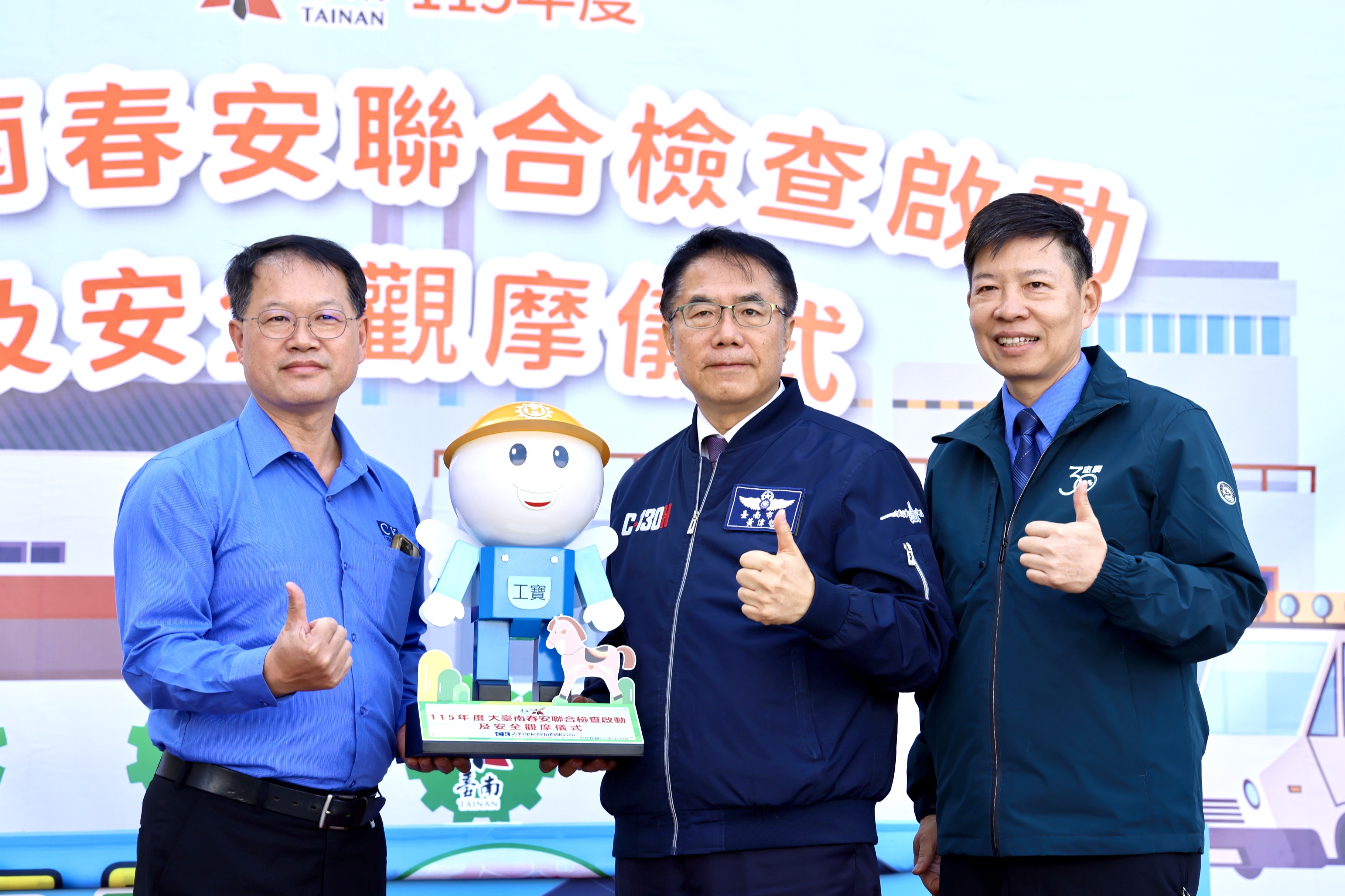 市長黃偉哲表示,年關將至,各行業勞工朋友忙於加班趕工更加辛苦,企業主應提供安全無虞的職場環境,尤其高風險產業,更應留意維護安全。市府攜手勞動部啟動「大台南春安聯合檢查」,目的在督促事業單位把「職場安全衛生」放在所有工作的最前面,期許在全力拚經濟之前,先把安全防護做好,降低職場危害風險,惟有安全健康的勞工,才能讓企業穩健前行。