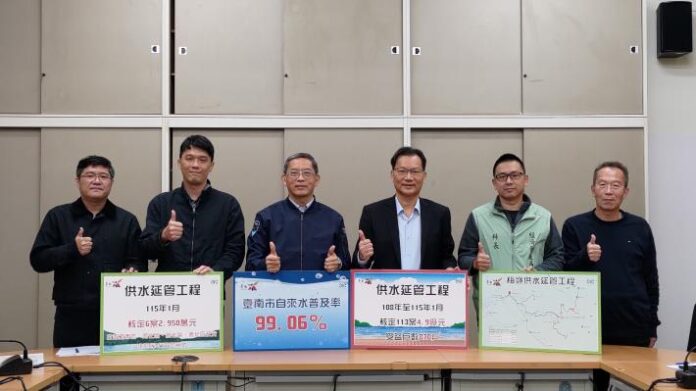 臺南市黃偉哲市長表示,臺南市供水普及率99.06%,惟部分山區過去因自來水工程設置加壓站及配水池相關土地取得不易、延管總工程經費偏高,加上部分住戶沒有合法的房屋使用執照,致無法順利獲水利署核定施作,為改善山區用水問題,市府主動爭取中央經費並協調需求土地,已陸續解決部分偏遠山區自來水延管問題,今年度再順利爭取1,440萬元施作「楠西區灣丘里北勢仔供水延管工程」,預計115年12月前完工通水,將完成梅嶺風景區全線供水,除解決沿線各部落及遊客用水問題外,亦帶動梅嶺風景區觀光產業,有助於臺南山區整體經濟發展。