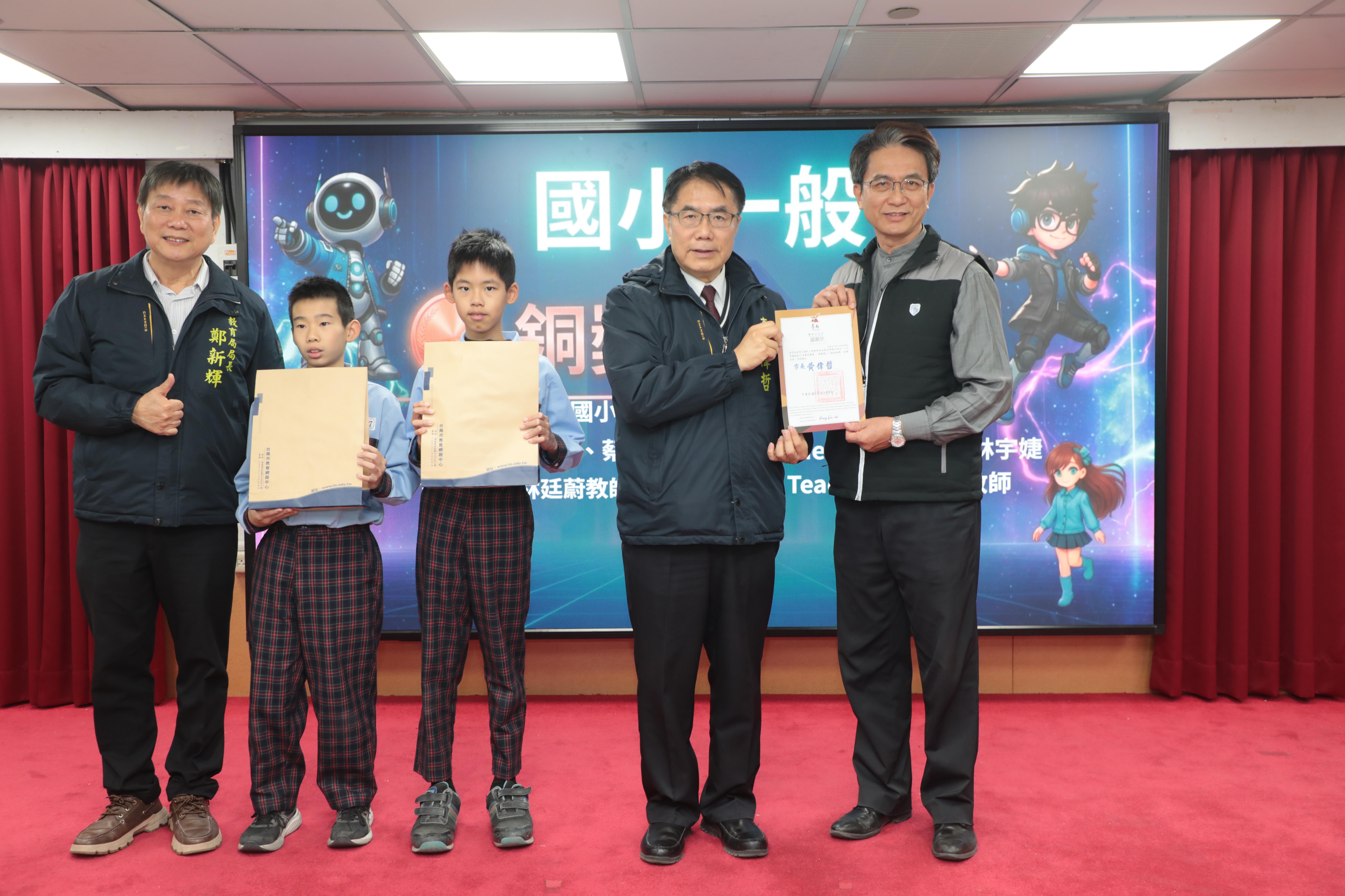 市長黃偉哲表示,恭喜本次獲獎的各國中小學校,皆已成為未來臺南科技教育發展的重要基地,顯示只要用心投入,成果自然可期。除感謝教師們的專業指導、家長的全力支持及學生的努力付出,並肯定教育局團隊的超前部署,在 AI 人才培育與機器人教育上迅速精進。即使面臨財政資源限制,市府仍排除萬難,持續推動「生生用平板」政策及相關軟硬體建置,落實科技融入教學與學習,發揮事半功倍的成效。
