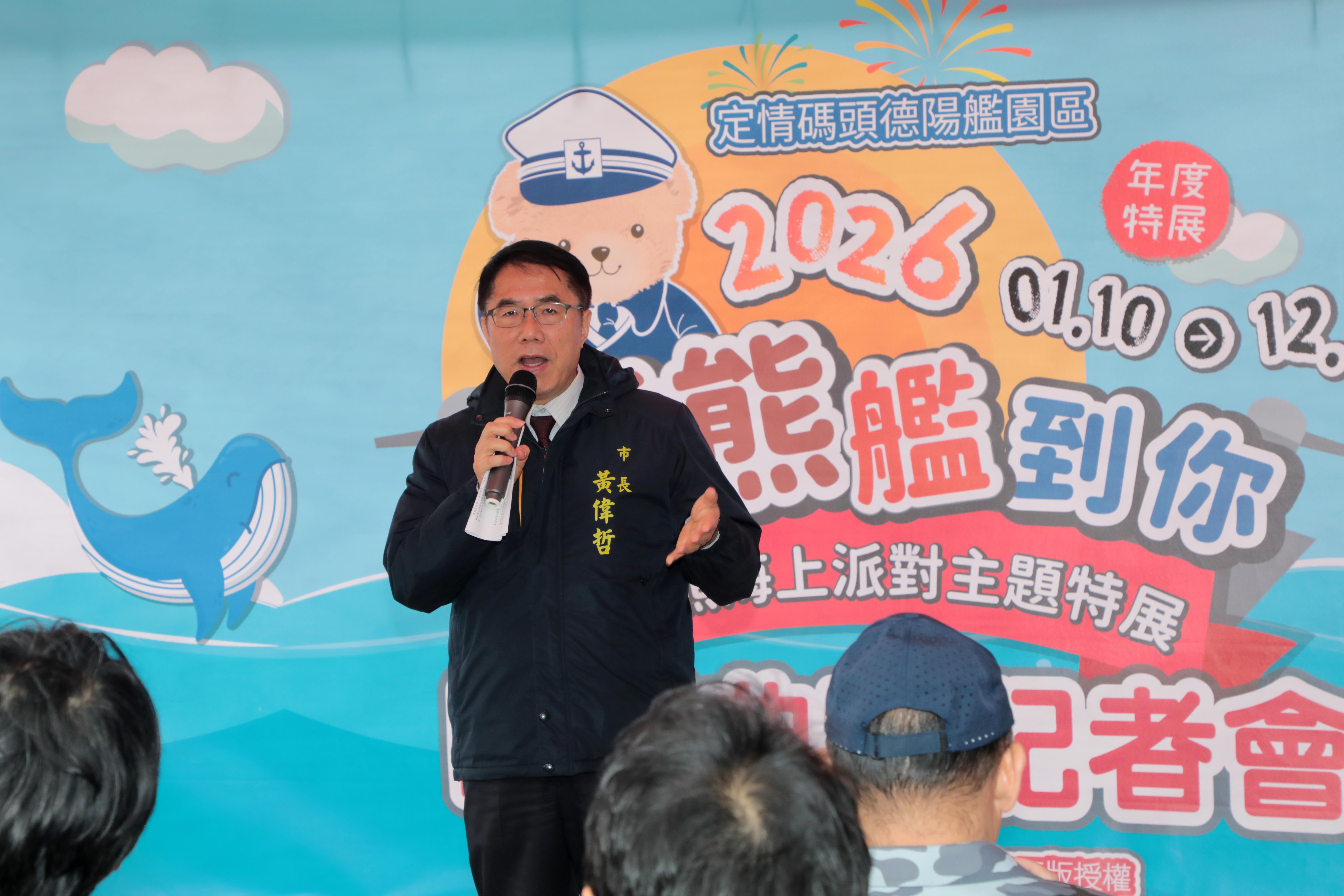 台南市政府委外營運景點「定情碼頭德陽艦園區」於2026年度推出年度特展「熊熊艦到你・2026泰迪熊海上派對主題特展」,以泰迪熊形象結合海軍文化,打造全台首座「海上熊樂園」,展期自明(10)起至12/31止。台南市長黃偉哲今(9)日親自出席開展記者會,邀請軍事迷、泰迪熊迷及親子家庭把握展期,前來體驗別具特色的海上主題展覽。