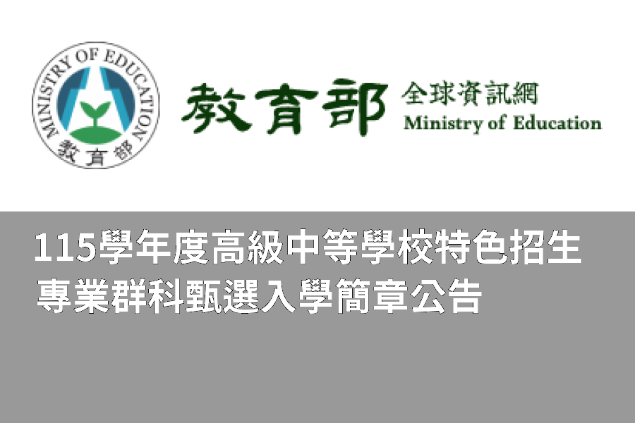 為鼓勵國中畢業生適性入學,教育部115學年度持續辦理「高級中等學校特色招生專業群科甄選入學」,15日公告入學簡章,全國共87所高級中等學校、351個專業群科(班)辦理「實務選才」,提供7,598個招生名額,自115年3月9日至13日受理報名(報名新北市特色招生學校者另依其規定時程辦理),4月11日或12日其中一天辦理術科測驗。