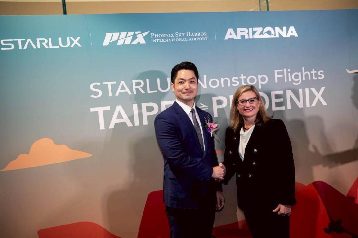 星宇航空執行長翟建華介紹了籌備直航的五年歷程,也表示鳳凰城如今有先進的半導體、航太、自動駕駛等產業聚落,同時也有世界級國家公園都旅遊資源,期待透過直航提供更好的旅行體驗;外交部部長林佳龍也為此次直航的各方努力表達感謝,並表示十分期待未來親自搭乘此班機訪問鳳凰城,深化雙邊關係。