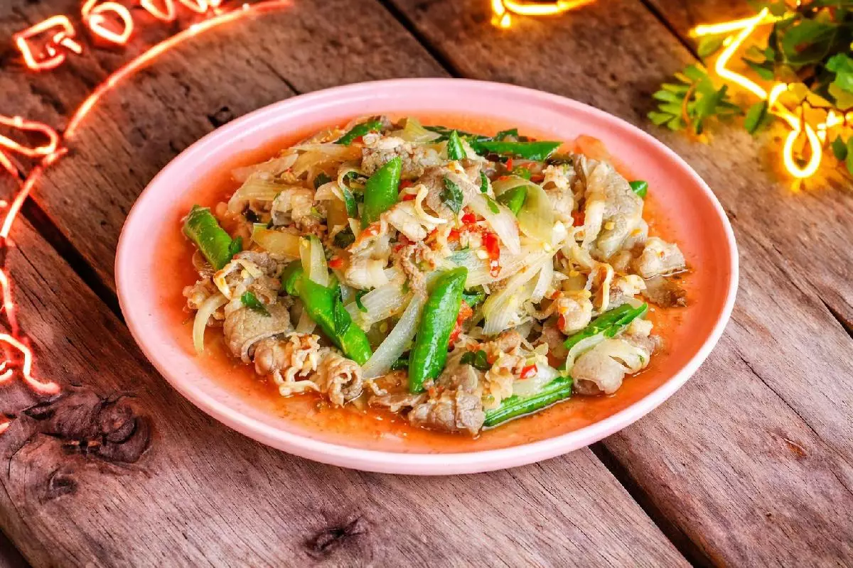 A:熱門菜色包括冬蔭海鮮湯、泰式打拋豬肉飯與椒麻雞。特別是椒麻雞,以酥脆外皮與酸辣醬汁平衡出香氣層次,常被食客列為泰式美食清單前段。