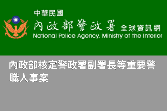 - 臺南市政府警察局督察長李名昌調任警政署刑事警察局督察長