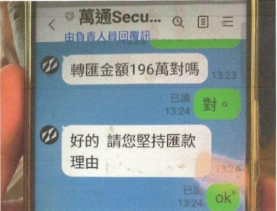 苗栗市一名廖姓老翁(72歲)日前透過手機通訊軟體加入投資群組,廖男對於群組內推薦的投資資訊深信不疑,依照指示前往銀行欲取款新臺幣196萬元進行投資,經銀行行員察覺有異,通報警方協助處理。