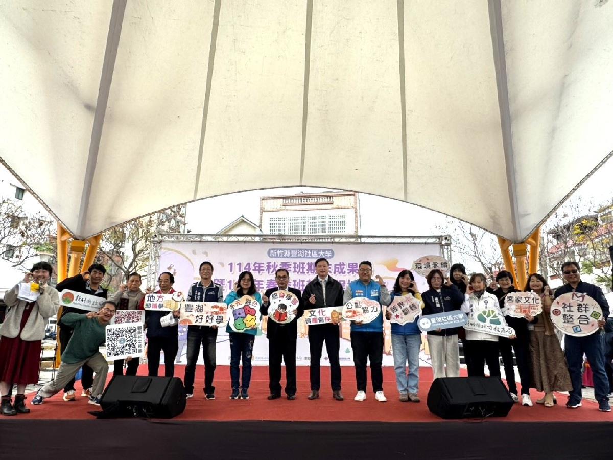 為展現地方終身學習推動成果,新竹縣豐湖社區大學今(17日)辦理年度成果展,透過課程成果展示、公民行動分享與社群交流,呈現自成立以來深耕地方、培力社區的累積能量。副縣長陳見賢表示,豐湖社區大學於113年2月正式成立,是縣內推動終身教育與公民社會的重要新據點,短短一年即展現豐沛的行動力與在地連結成果,114年開設105門多元課程,選課學員已成長至1543人。