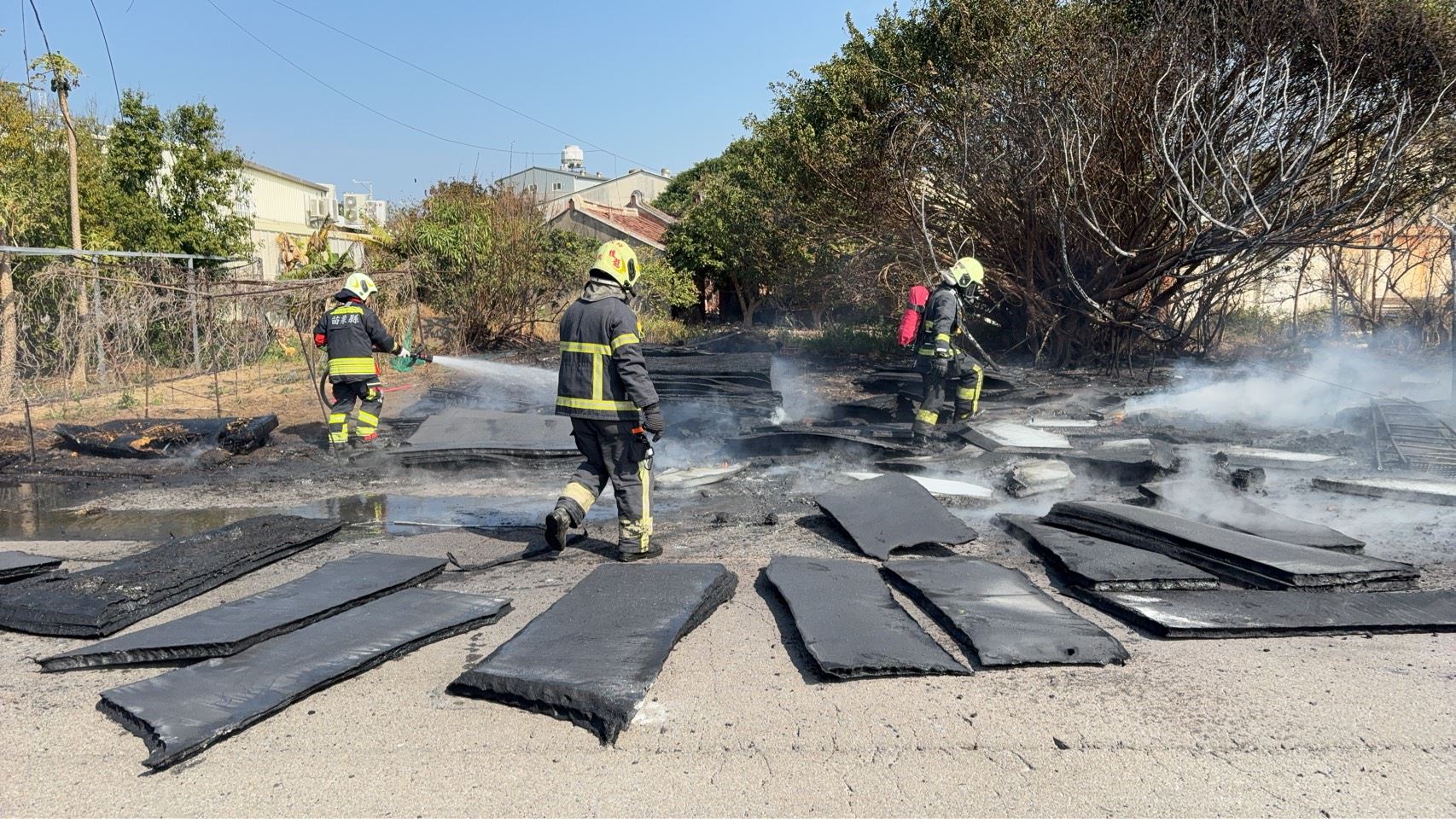 後龍廢棄物火警大量濃煙,消防局出勤滅火
