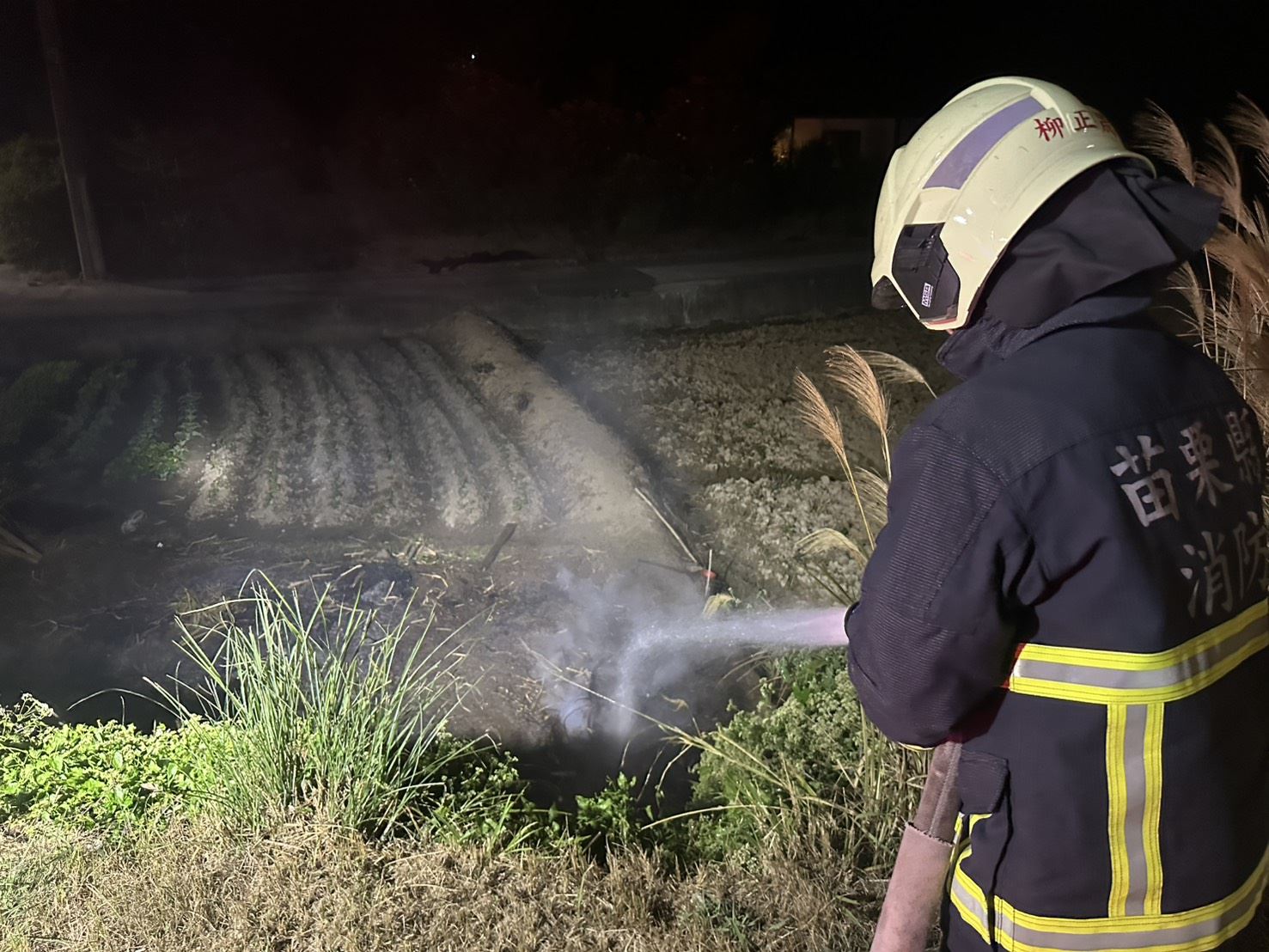 苗栗縣政府消防局日前接獲路過民眾報案,指行經造橋鄉苗8線時,發現路旁空地進行整地作業燃燒雜草,現場濃煙竄出,疑似發生火警。消防局獲報後,立即派遣造橋分隊車輛及人員趕赴現場查處。消防人員抵達後,確認起火面積約4平方公尺,起因為民眾整地時露天燃燒雜草所致。由於現場鄰近空地及周邊植被,若未即時處置,恐因風勢助長而擴大延燒,增加火災風險。消防人員隨即佈署水線迅速撲滅火勢,並加強殘火處理及周邊灑水降溫,確認無復燃之虞後,始完成任務,所幸未造成人員傷亡及財物損失。