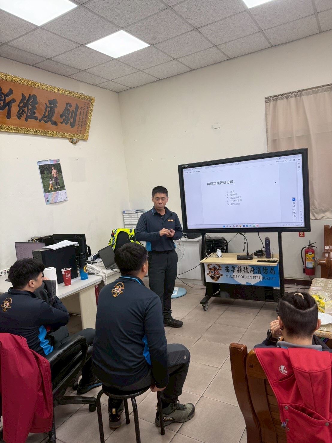 為提升第一線救護人員對意識不清患者之判斷與處置能力,苗栗縣政府消防局第一大隊頭屋分隊於本(1)月16日辦理「意識不清患者評估」救護專業訓練,透過情境模擬與實務操作,強化救護人員臨場應變與團隊合作能力。