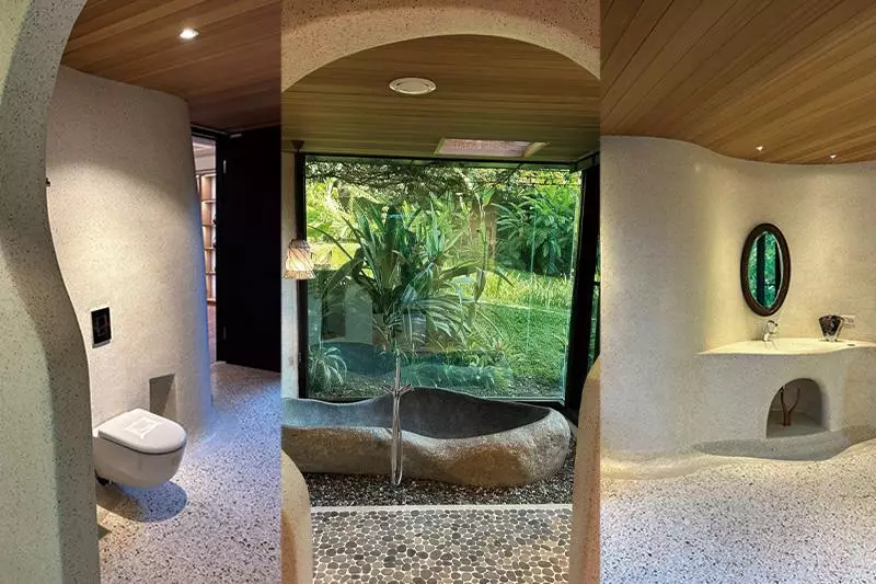 ▲美術館內浴室也是藝術的一環,採用人性化設計配置,保留自然景觀、氛圍,放置珍藏藝術品,內部使用多為弧形造型,獨具風格。