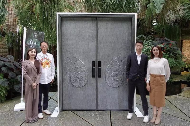 門體選用頂級鈦金,搭配七十年歷史的珍稀緬甸柚木,藝術家透過細膩雕刻工藝將異材質自然交融,門面宛如「平靜流淌的銀色河流」,每一道刻痕都是獨一無二,呈現不可複製的藝術價值。