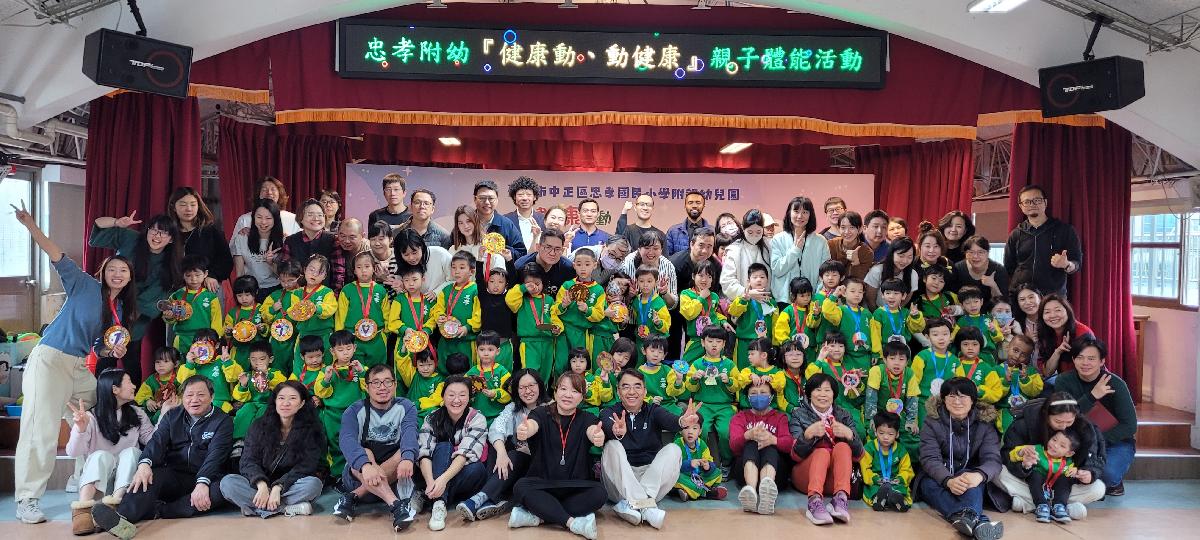 【臺北報導】為深化家校合作、促進親子互動,臺北市中正區忠孝國民小學附設幼兒園舉辦「健康動・動健康」親子活動,在李亦欣校長的帶領下,邀請全體幼兒園師生與家長共同參與。活動透過親子律動與趣味競賽,讓孩子在遊戲中學習、在陪伴中成長,現場洋溢著歡笑與活力。