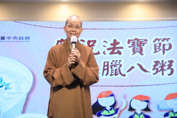 佛光山惠中寺為感謝台中市政府團隊長期對市政的努力,今(19)日在台灣大道市政大樓惠中樓舉辦「佛光山惠中寺慶祝法寶節結緣臘八粥活動」贈粥儀式,該寺準備數千杯美味的臘八粥、春聯及馬年紅包致贈市府員工。台中市長盧秀燕代表市府團隊感謝寺方的用心,一碗臘八粥象徵平安、吉祥,是市府同仁每年最期待的溫暖心意。