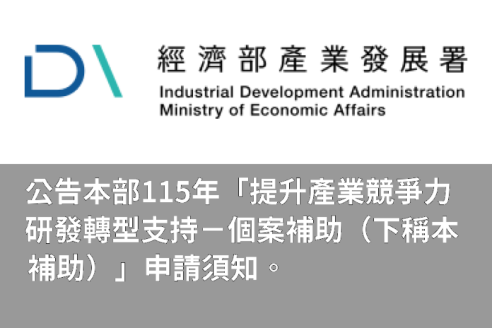 產經消費公告本部115年「提升產業競爭力研發轉型支持-個案補助(下稱本補助)」申請須知。 產經消費 公告本部115年「提升產業競爭力研發轉型支持-個案補助(下稱本補助)」申請須知。 編輯 江 秉鈞 2026-01-21 因應國際情勢強化經濟社會及民生國安韌性特別條例第3條第2款、經濟部因應國際情勢強化經濟韌性辦法第5條第1項第1款及第6條第1項第1款。 Tags經濟部產業發展署 延伸閱讀 商情 展菱科技 打造全台無塵室工程新標竿 商情 展菱科技–台南無塵室隔間、新竹防火隔間天花板工程 商情 水晶壓克力商行專業壓克力加工打造台中廣告招牌新價值 商情 水晶壓克力商行–台中壓克力招牌客製化加工訂製批發