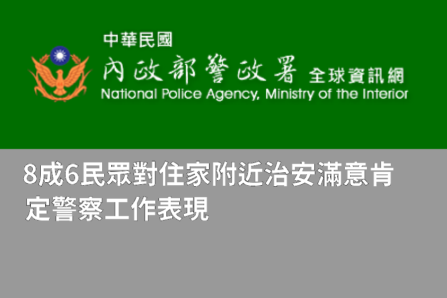 社會警政8成6民眾對住家附近治安滿意 肯定警察工作表現