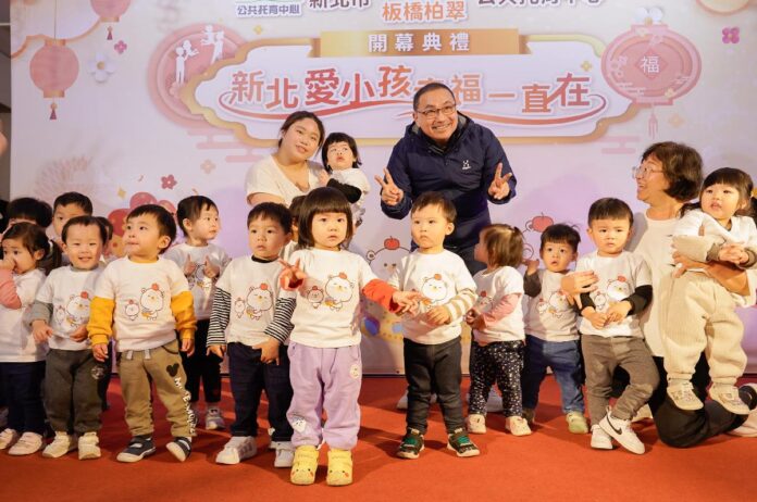 新北市長侯友宜表示,孩子是每個家庭最珍貴的心肝寶貝,市府責無旁貸打造更穩定、完善的托育安全網。截至目前,新北市已設置130家公共托育中心,可收托6,555名幼兒,另有253家私立托嬰中心,整體收托量能達16,769人;若再結合居家托育服務,家外托育率已突破45%,大幅超越OECD國家平均的36%,穩居全國之冠。