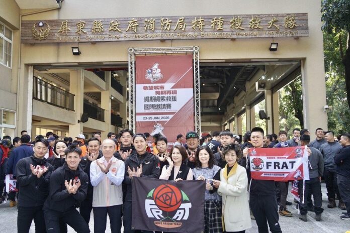為持續深化消防繩索救援專業,並拓展國際實務交流,屏東縣政府於1月23日至25日舉辦為期三天的「繩期繩索救援國際邀請賽」,邀集來自臺灣、香港、日本、泰國等地共22支菁英救援隊伍同場競技,縣長周春米今(23)日到場主持開賽儀式,期盼透過擬真救援情境的競賽與技術交流,展現消防救援國際合作的強大能量。