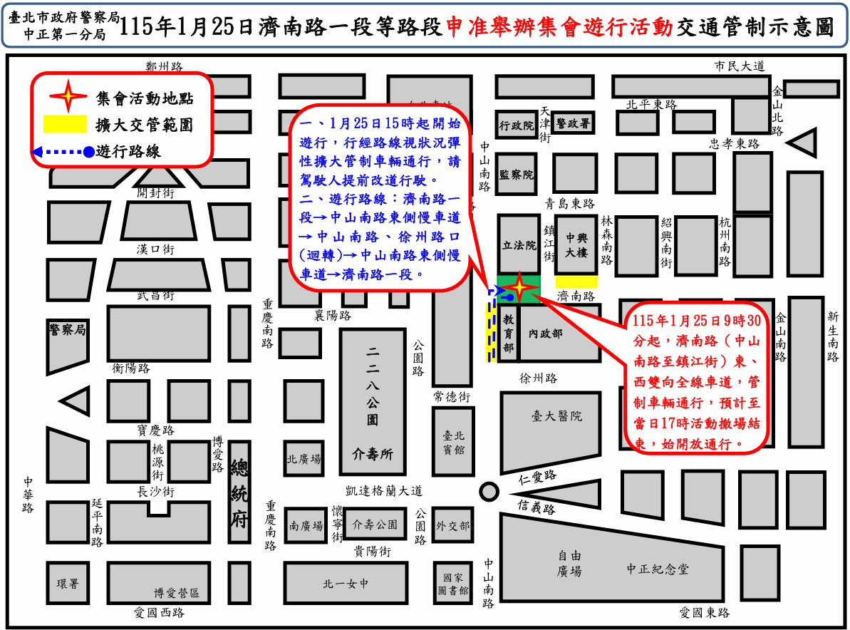因應115年1月25日濟南路一段活動交通管制,公車配合調整措施