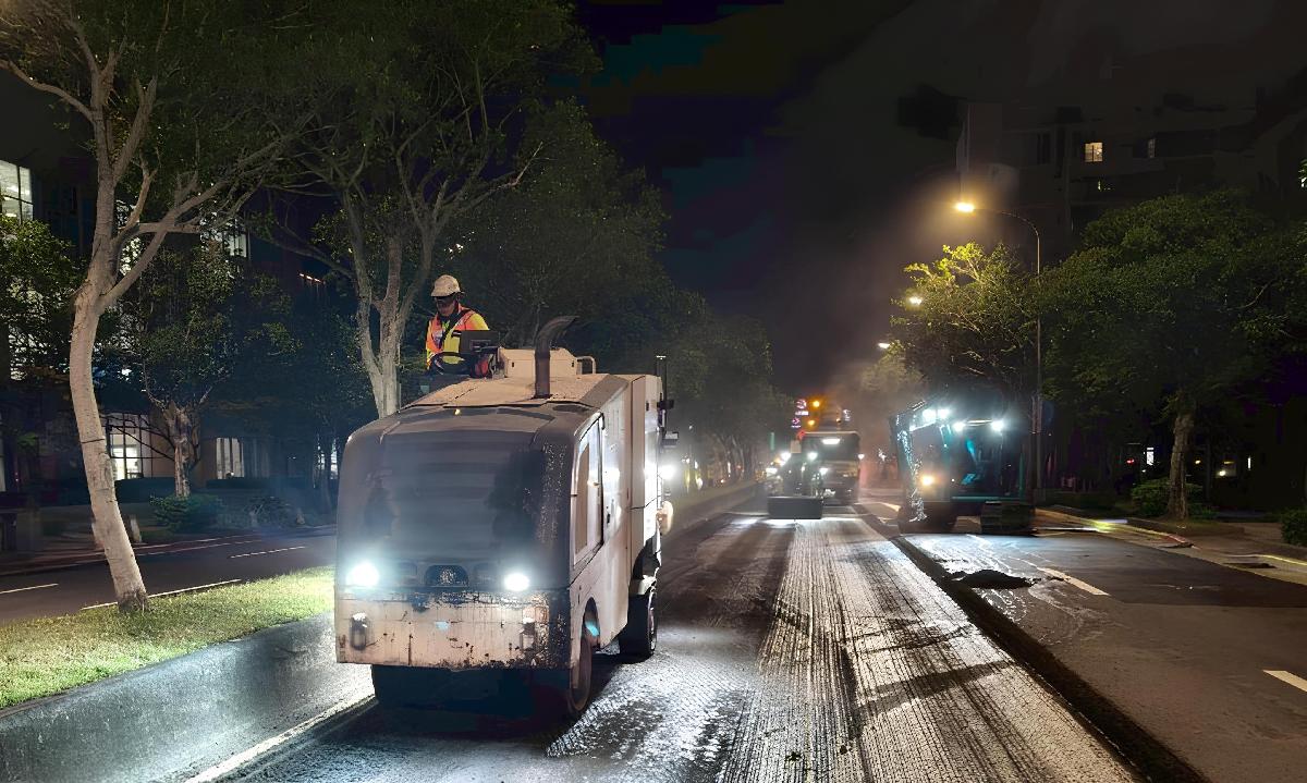 新工處養護工程隊隊長李英偉表示,舊宗路一段於上下班尖峰時段易壅塞,加上鄰近內湖交流道及大型賣場,車流頻繁,鋪面耗損速度快,導致路面龜裂與老化情況加劇。為改善行車安全與舒適度,新工處錄案辦理整修,本次工程更新長度約1,337公尺、面積13,092平方公尺。路面更新完成後,不僅提升行車品質,也同步改善周邊市容景觀。
