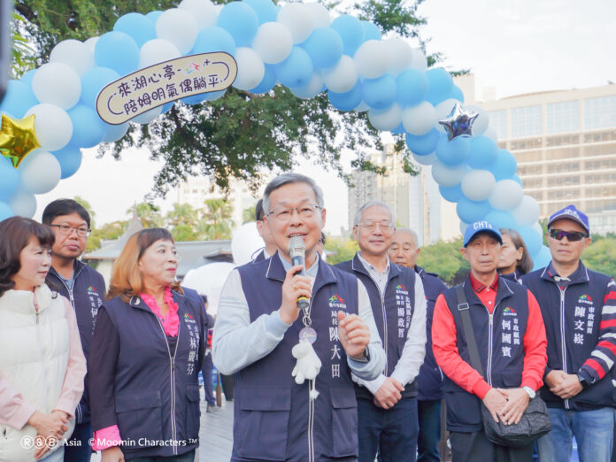 台中公園出現超萌新朋友,療癒指數瞬間飆升!台中市政府攜手 Rights and Brands Asia (RBA),將國際知名 IP「姆明一族 (The Moomins)」溫柔純真的形象自然融入百年歷史場域;今(25)日由建設局長陳大田代表盧秀燕市長到場啟用點燈,這隻深受全世界喜愛的「姆明 (Moomin)」將化身為全新的水上藝術裝置,以超放鬆的「躺平」姿態漂浮在日月湖上,與市定古蹟「湖心亭」同框,讓台中公園瞬間變成最療癒的打卡新熱點。