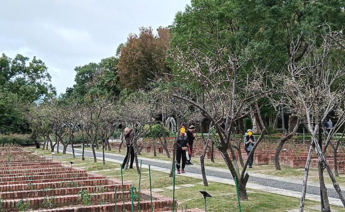 士林官邸公園園區內種植多株梅樹,分布於玫瑰園及460巷入口處,花色以白梅為主,點綴淡粉花影,花朵或含苞、或盛開,與園區自然景觀相互映襯,展現「寒中綻放」的梅花意象。漫步園區,可感受冬季特有的靜謐氛圍,是民眾散步、賞花與放慢腳步的好去處。